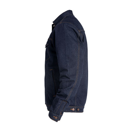 The John Doe Maverick jacket LE is an XTMr monolayer jacket in a vintage look styled according to the classic 70s denim jacket and CE approved by EN 17092-2:2020 level AAA. The XTM denim jacket protects you in every situation with CE Level 1 protection in the shoulders and elbows and is prepared for back protection. The jacket has a slightly longer box fit. The eyelet buttons; covered YKK front zipper and patch breast pockets lends an air of authenticity in a true-to-the-original denim jacket style. Features waist adjustable with studs; studded cuffs with adjustable width side pockets; inside pockets on the left and right and YKK zipper. Timeless style and safety. This RAW LE is exclusive designed for MCS.