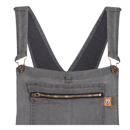 The Motogirl bib-and-brace overalls; dungarees or "dungri''s are stretchy; protective and ideal for wearing on the motorcycle or as casual trousers. The dungri is made of cotton/elastane and class A EN-17092-4:2020 certified (with AA rate abrasion) and has CE level knee protection ( EN1621-1:2012) included. It comes with belt loops; side zip closure; large front bib zip pocket; adjustable braces; stretch back panel for comfort abd front and back pockets. The inner layer is DuPontT KEVLARr Aramid / PE Fiber which passes AA for abrasion. Relax fit dungarees; if you want it to fit like a legging do go one size smaller.